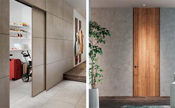 隠し扉が作れる丁番やフラット引戸、丁番の存在を感じさせないHESシリーズのコーナーでは、意匠性や施工性がアップした製品をご覧いただけます。