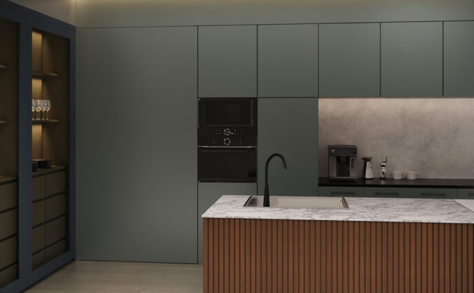閉時はフラット&扉が平行に動くLIN-X(リンクス)ヒンジで、使いやすい全身鏡・洗面化粧台に。