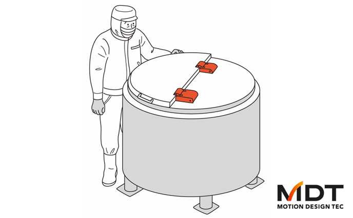 重い扉や蓋を”ふわっ”と軽く開けられる機能で、大きな装置の蓋も片手で楽に開けられ、身体への負担を減らせます。